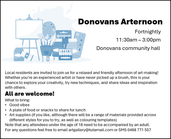 Fortnightly Saturday 11:30am – 3pm (see calendar)